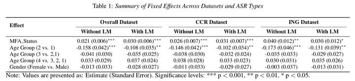 Automatic Speech Recognition (ASR) models often struggle with the phonetic, phonological, and morphosyntactic features found in African American English (AAE). This study focuses on two key AAE variables: Consonant Cluster Reduction (CCR) and ING-reduction. It examines whether the presence of CCRandING-reduction increases ASR misrecognition. Subsequently, it investigates whether end-to-end ASR systems with out an external Language Model (LM) are more influenced by lexical neighborhood effect and less by contextual predictability compared to systems with an LM. The Corpus of Regional African American Language (CORAAL) was transcribed using wav2vec 2.0 with and without an LM. CCR and ING-reduction were detected using the Montreal Forced Aligner (MFA) with pronunciation expansion. The analysis reveals a small but significant effect of CCR and ING on Word Error Rate (WER) and indicates a stronger presence of lexical neighborhood effect in ASRsystems without LMs.